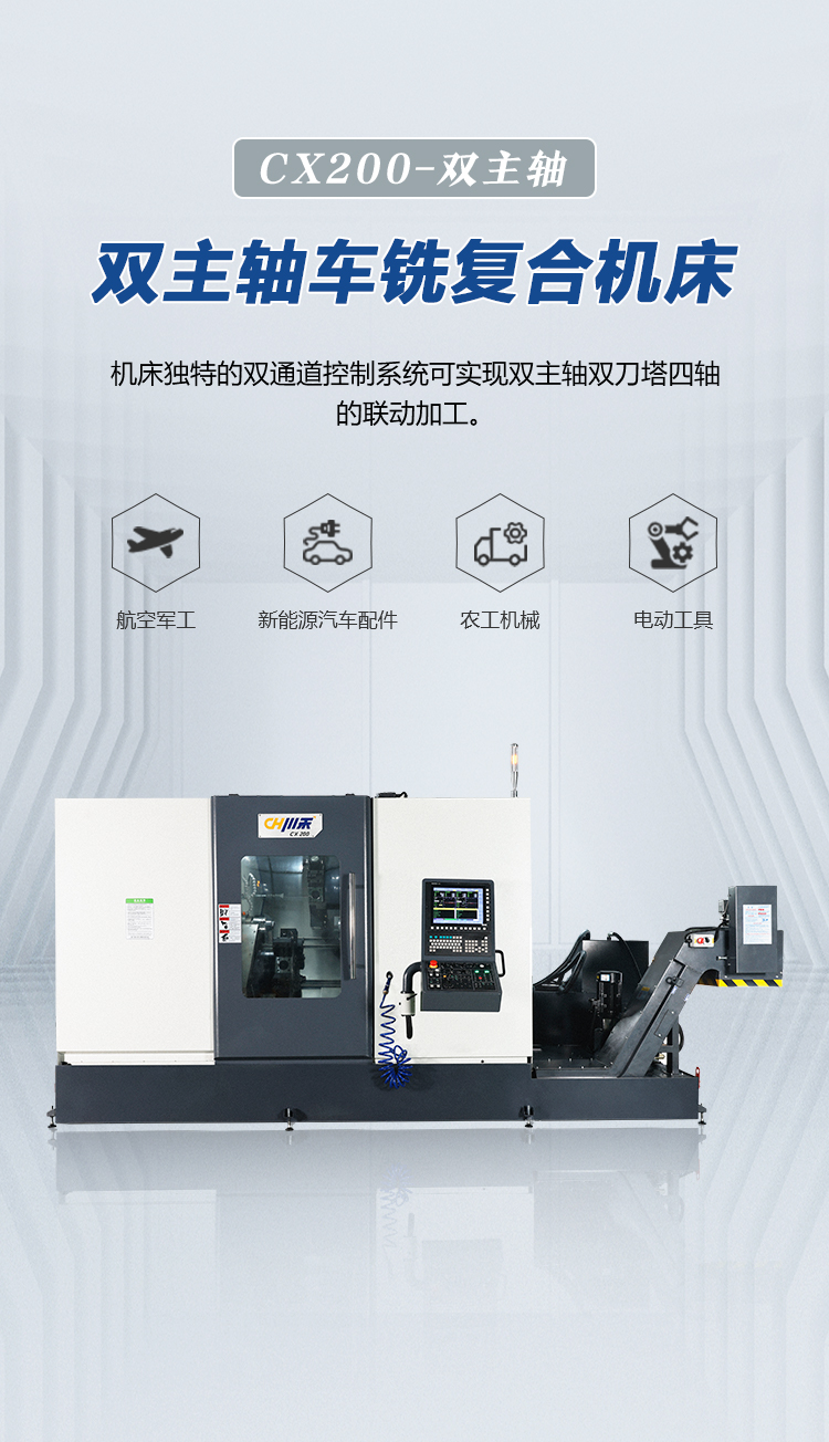 Adopting a dual-spindle layout, arranged oppositely,Two sets of turrets are arranged up and down, and the upper turret has a Y-axis.